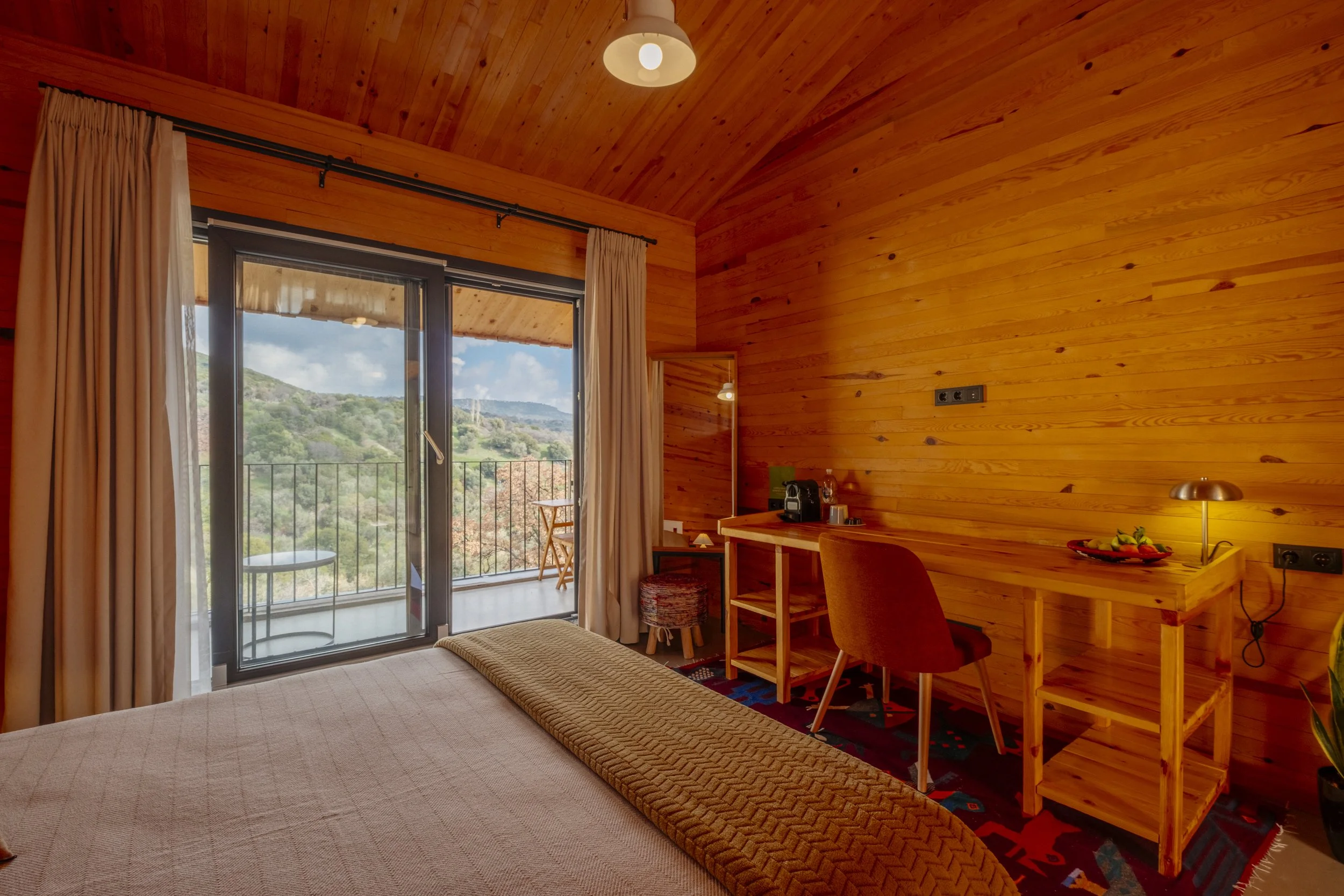 At Arazi, we offer two types of rooms: Biggie and Bungi. Designed with natural wooden textures, spacious work desks, comfortable beds, Nespresso coffee machines, and forest-view balconies, your room at Arazi is ready already.